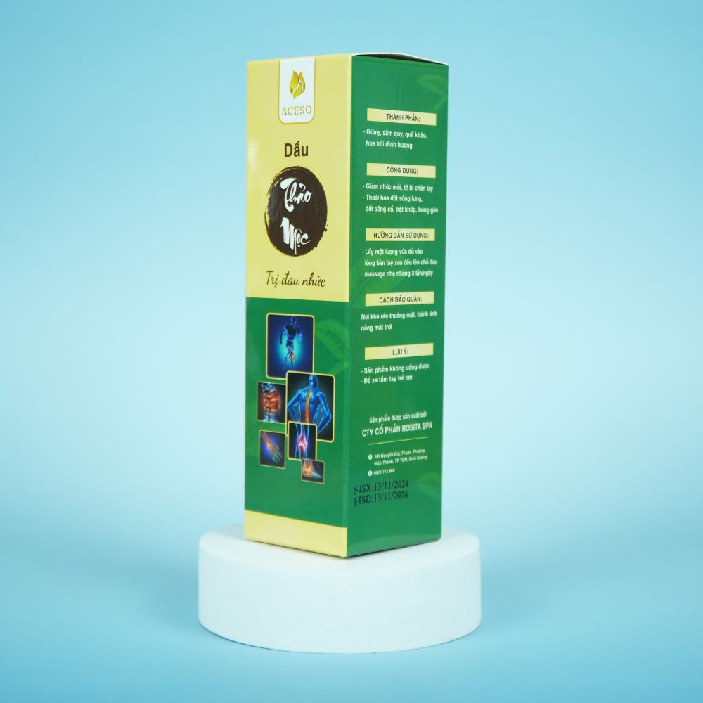 Dầu thảo mộc trị đau nhức Aceso là một sản phẩm chăm sóc sức khỏe được chiết xuất từ những thành phần thiên nhiên quý giá, mang đến giải pháp toàn diện trong việc giảm đau, thư giãn cơ thể và phục hồi sức khỏe. Được phát triển dựa trên những bài thuốc dân gian kết hợp cùng công nghệ hiện đại, Aceso không chỉ đơn thuần là một loại dầu xoa bóp thông thường, mà còn là một người bạn đồng hành trong hành trình chăm sóc sức khỏe tại nhà cho mọi lứa tuổi.